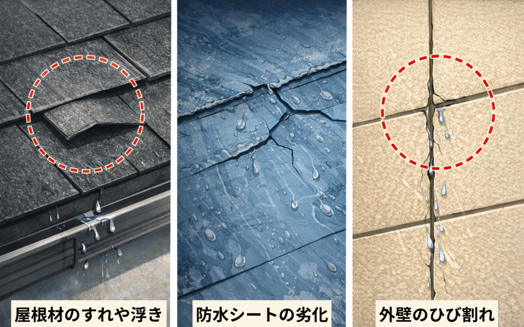 ✅小さな劣化が一気に雨漏りとして表面化する
