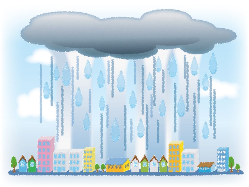ゲリラ豪雨では、短時間で非常に多くの雨が降るため、住宅の排水機能が追いつかなくなることがあります。