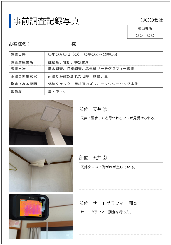 もちろん費用は大切な要素ですが、その前にしっかり確認しておきたいのが、『 雨漏り調査報告書 』です。