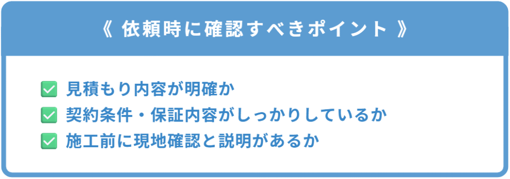ここでは、読者目線で「 良い業者の特徴 」と「 確認すべきポイント 」について解説します。