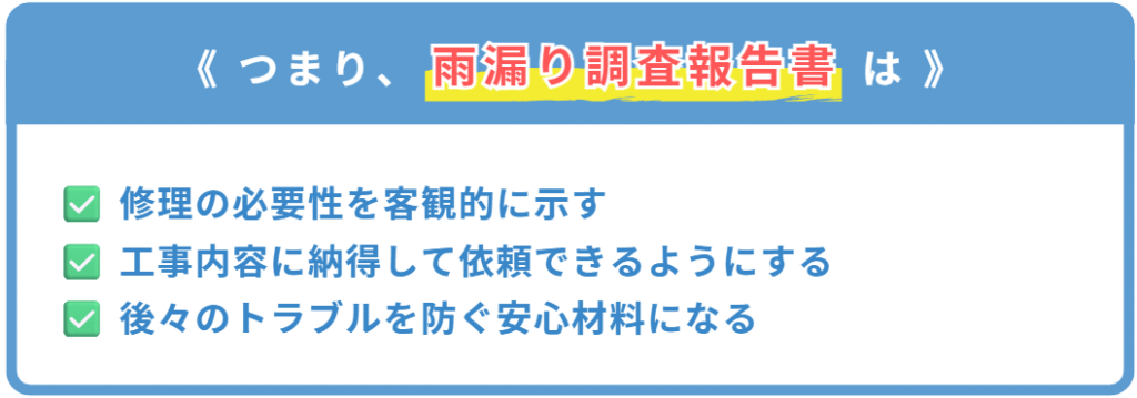 「 うちの雨漏り、本当に直るの? 」その不安を解消するのが、『 調査報告書 』です。