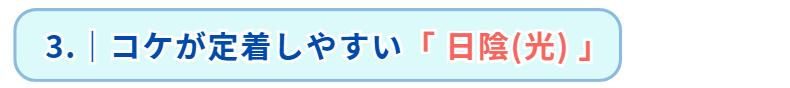 つまり、コケをなくすためには、この3つの条件のいずれか、または全てを断つことが重要となります。