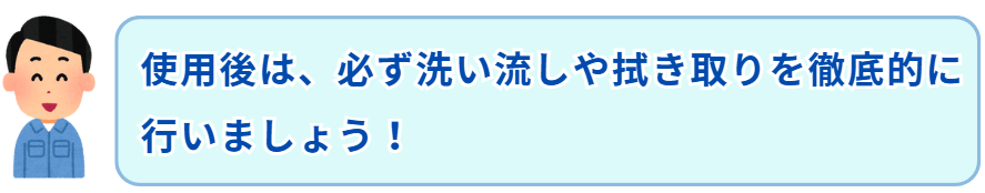 ②. 重曹が残ると白い跡(残留物)になることがあるため、水で十分に洗い流すことが重要です。