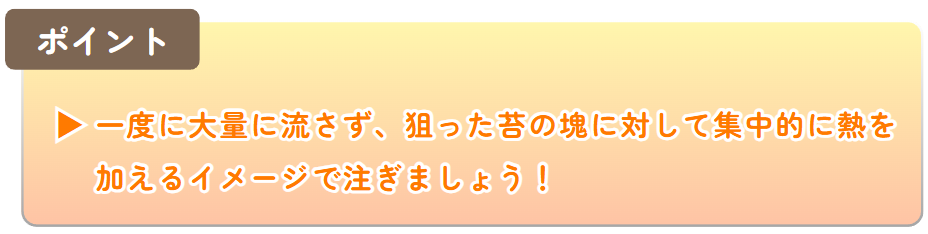 ✅ ステップ2|苔に熱湯をかける(重点的に)