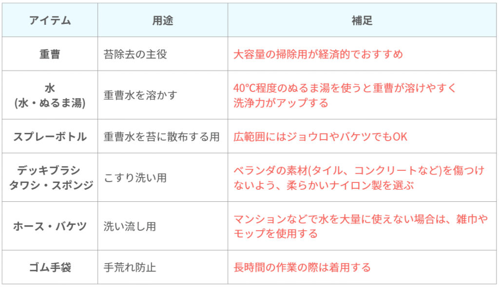 ここでは、重曹を使ったコケ掃除の準備と手順を詳しく解説いたします。