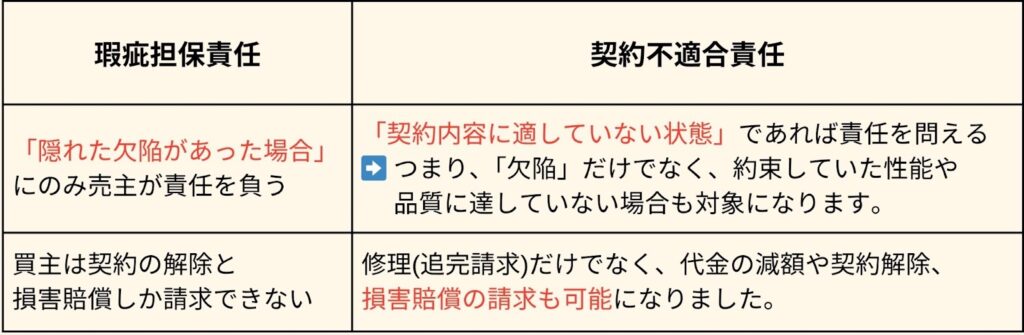 これは2020年4月の民法改正で、それまで使われていた【瑕疵担保責任】が廃止され、新しく導入された制度です。