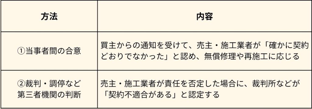 💡「契約どおりの施工がされていたか」「予見できなかった不具合かどうか」がポイントになります。