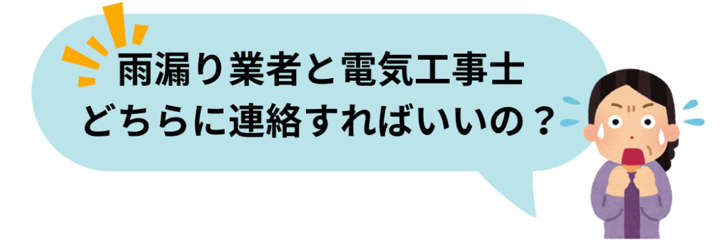 漏電が疑われる場合、相談先に迷う方が多いですが、基本的には雨漏り業者電気工事士の両方が関わるケースが多いです。