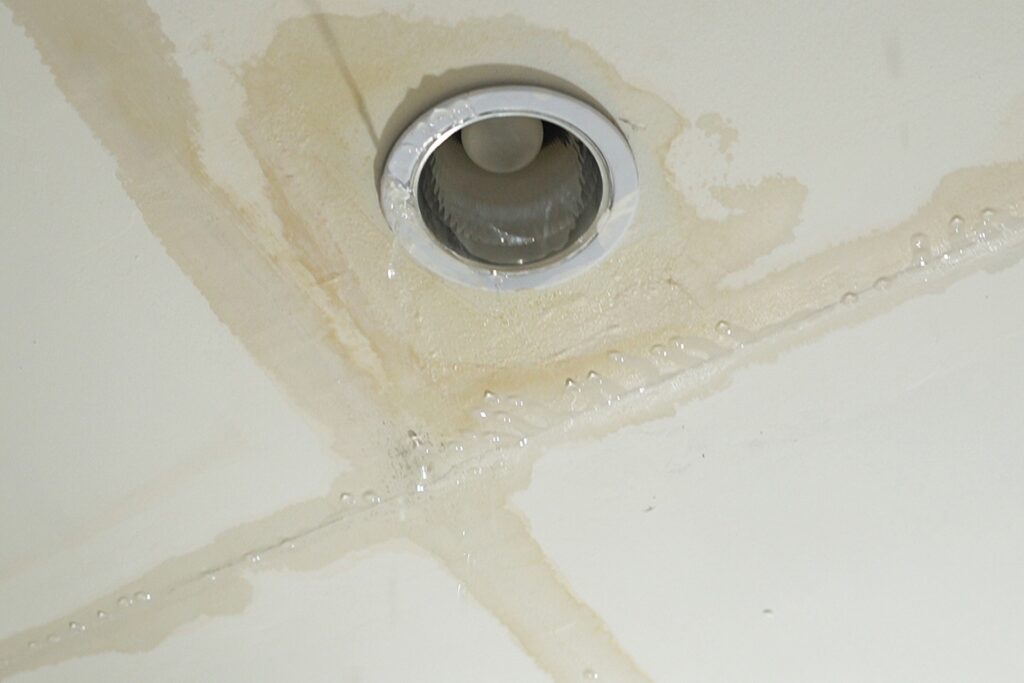 天井に雨ジミがある場合、その裏側の断熱材や配線がすでに濡れているケースが多く、照明器具内部に水が溜まるとショートの危険が高まります。