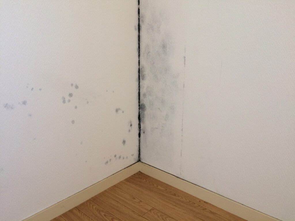 湿気を吸った下地ボードが膨張し、クロスが押し出されるように浮いてきます。黒いシミや点状のカビが出る場合も要注意です。壁の中でカビが繁殖しており、室内側にまで出てきているサインです。
