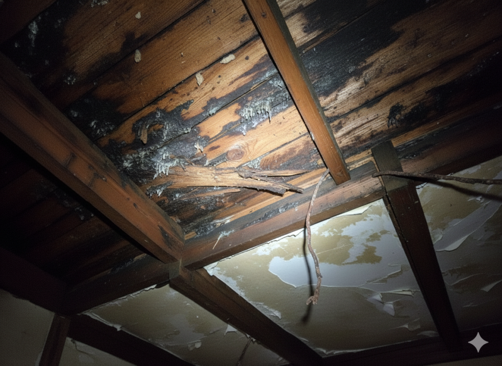 野地板が湿気や雨水の影響で傷んでいる恐れがある