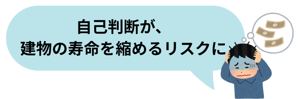 部分的な補修は、一見するとコストを抑えられる賢い選択に思えますが、建物の劣化状況や雨漏りの有無によっては、かえって無駄な出費を増やしたり、住まいの寿命を縮めたりするリスクもあるからです。