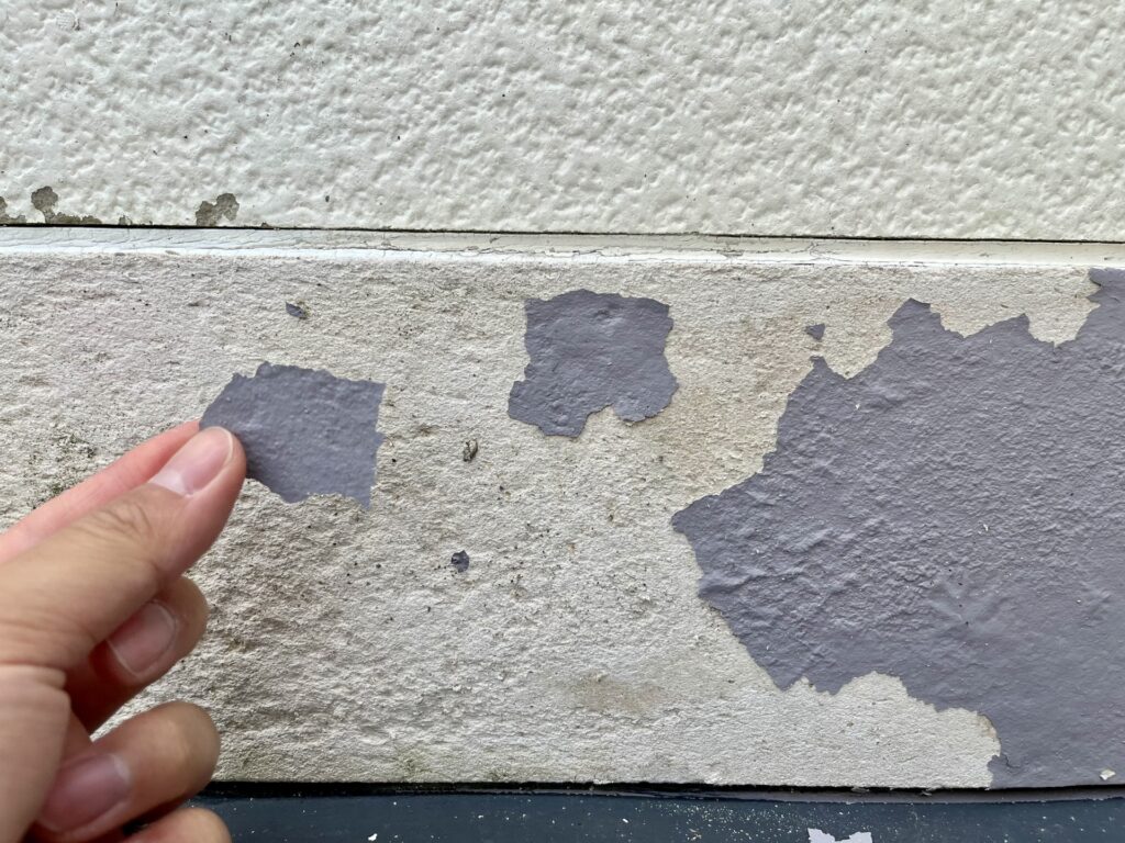 紫外線や雨風の影響を強く受ける位置にあるため、外壁よりも早く塗装が傷み、「表面が白っぽくなる」「塗料がポロポロ落ちる」といった症状が現れます。