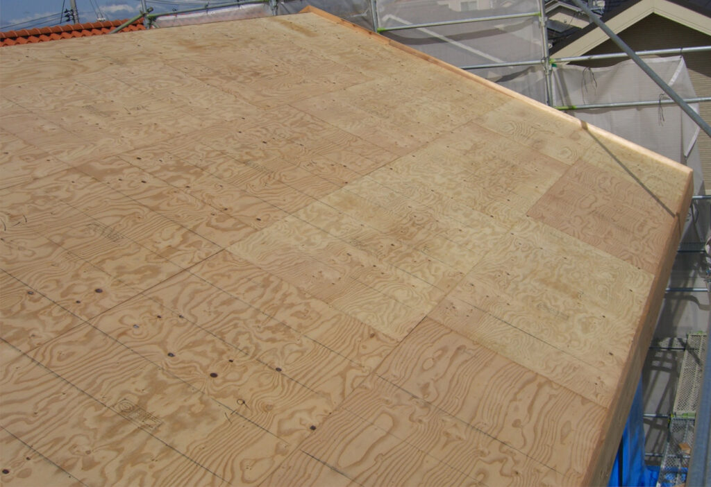 瓦やスレート、金属屋根などの屋根材は、直接垂木に留められているわけではなく、野地板の上に施工されます。野地板が健全であれば、屋根材のズレや浮きを防ぎ、強風や地震時にも屋根全体の安定性を保つことができます。