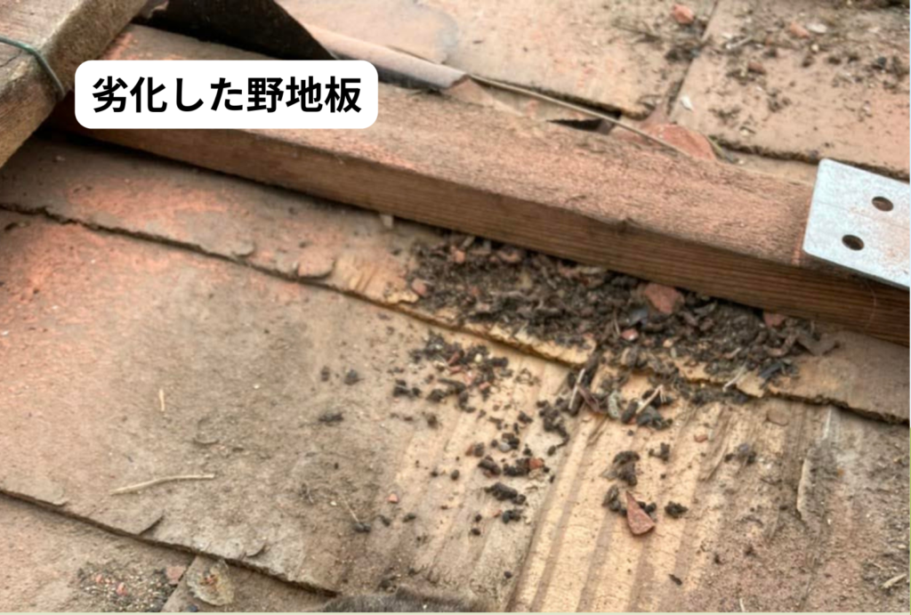 雨水が侵入した際には、最終的に野地板まで水が達することもあり、ここが健全かどうかで被害の大きさは大きく変わります。見た目では分からない分、劣化に気づいたときには深刻化しているケースも少なくありません。