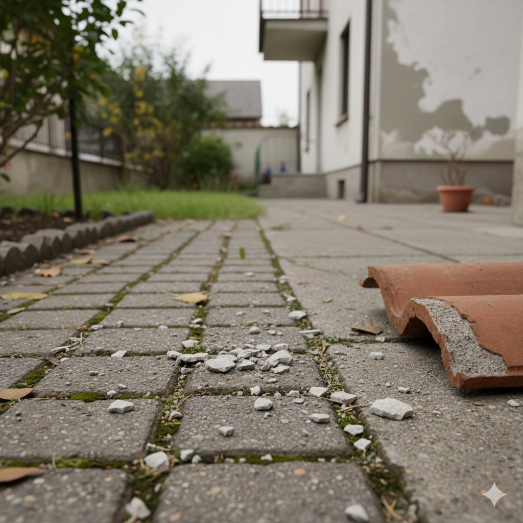 庭先やベランダに、砂利のようなセメントの破片が落ちていませんか?