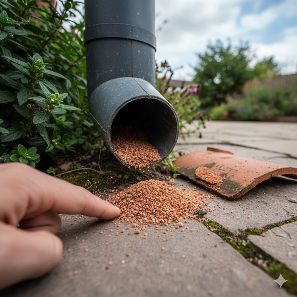 雨樋に砂を見つけたなら、それは瓦が「もう限界だ」と叫んでいる末期症状です。