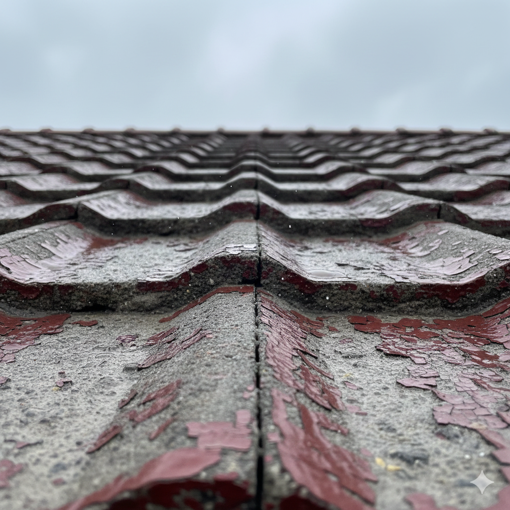 なぜなら、日本瓦と異なり、セメント瓦自体には防水性能がほとんどないためです。瓦を雨や雪から守っているのは、表面に施されたわずか数ミリの塗膜だけです。