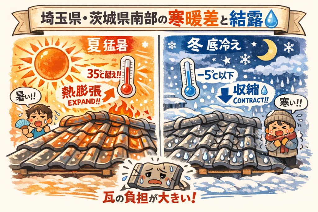 夏は猛暑、冬は底冷えするこの地域では、瓦の「熱膨張・収縮」が激しく起こります。