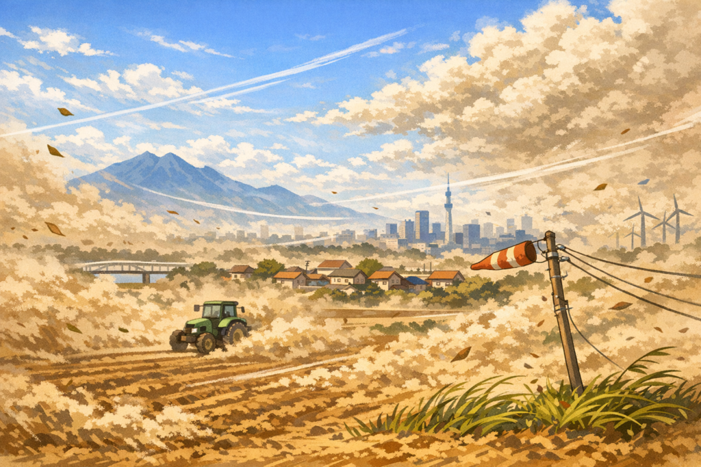 【茨城県全域・千葉県北西部】土埃と強風
