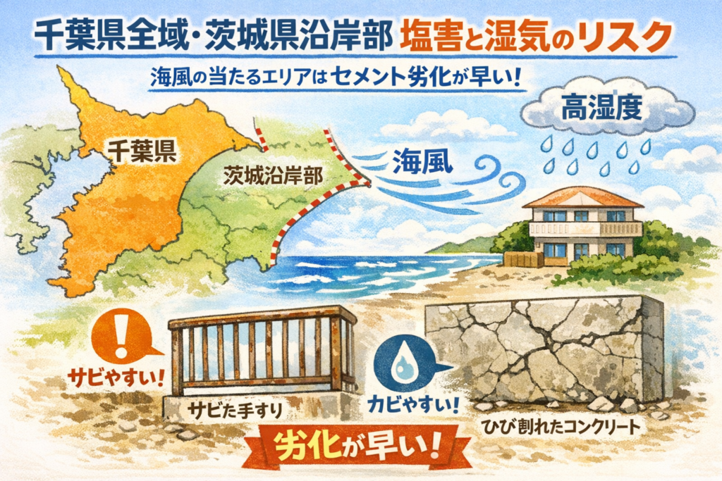 【千葉県全域・茨城県沿岸部】塩害と湿気のリスク