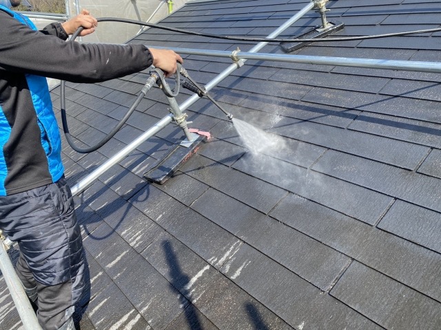 瓦塗装で最も大切なことは、実は塗装前の「高圧洗浄」です。根深く入り込んだ汚れを落としきらないと、せっかくの塗装もすぐに浮いてしまいます。