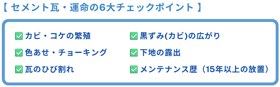ここまで、セメント瓦が発する「SOSのサイン」を解説してきました。
