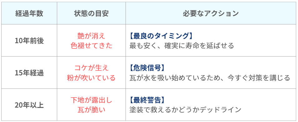 瓦の変化は、大切な住まいからのSOSです。角の丸みや色あせに気づいた今こそ、大きな出費(葺き替え)を未然に防ぐ絶好の機会といえます。
