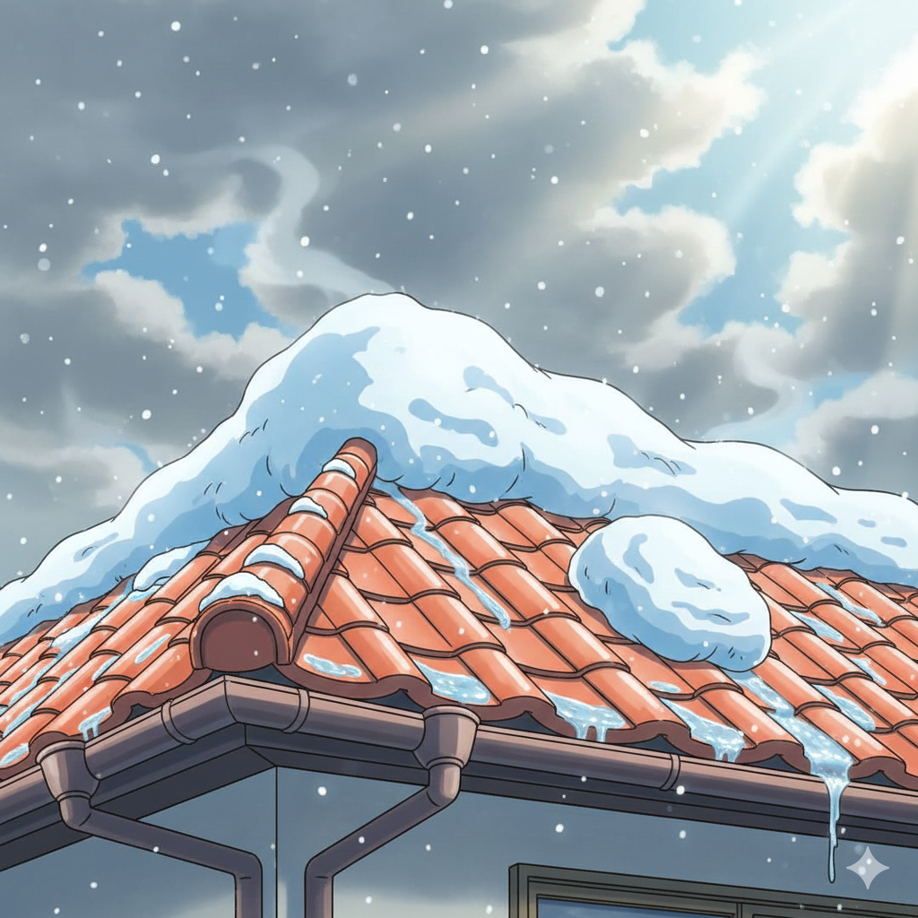 関東(特に千葉や埼玉・茨城)の雪は、北海道などのサラサラした雪とは異なり、非常に水分量が多いのが特徴です。塗装が剥げたセメント瓦はこの水分をスポンジのように吸い込み、その重みで瓦が割れたり、屋根の構造に負担をかけたりします。