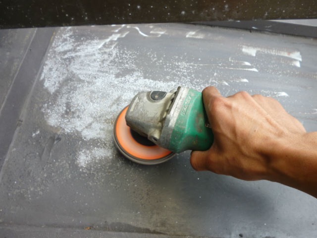 雨漏りの原因となっている箇所の浮いたり剥がれたりしている古い塗膜や、進行した錆を徹底的に除去します。ディスクサンダーやワイヤーブラシといった電動工具を使い、脆弱な部分を健全な下地まで研磨して露出させます。この工程が不十分だと、新しい塗料を塗ってもすぐに剥がれてしまい、雨漏りが再発するリスクが高まります。