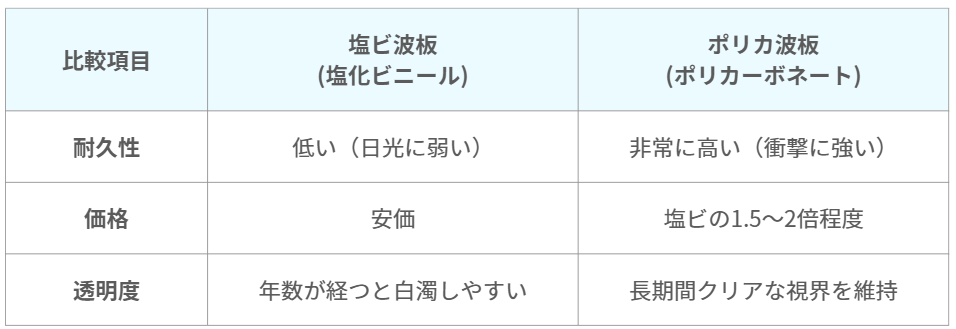 ✅ 塩ビ波板 vs ポリカ波板 徹底比較