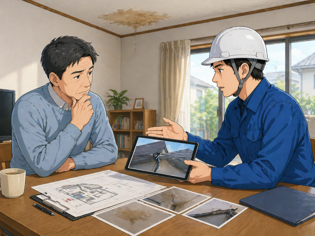 雨漏り跡に気づいたあと、多くの方が悩むのが「どの程度の修理が必要なのか」「どこに依頼すればよいのか」という点です。