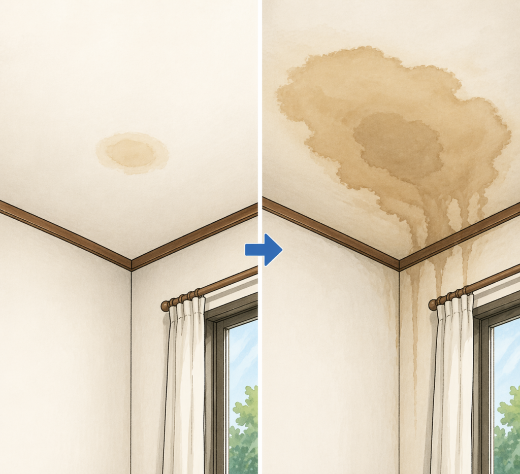 雨漏りは、「早ければ小さく直せる」「遅れるほど大きくなる」という非常に分かりやすい特徴を持っています。