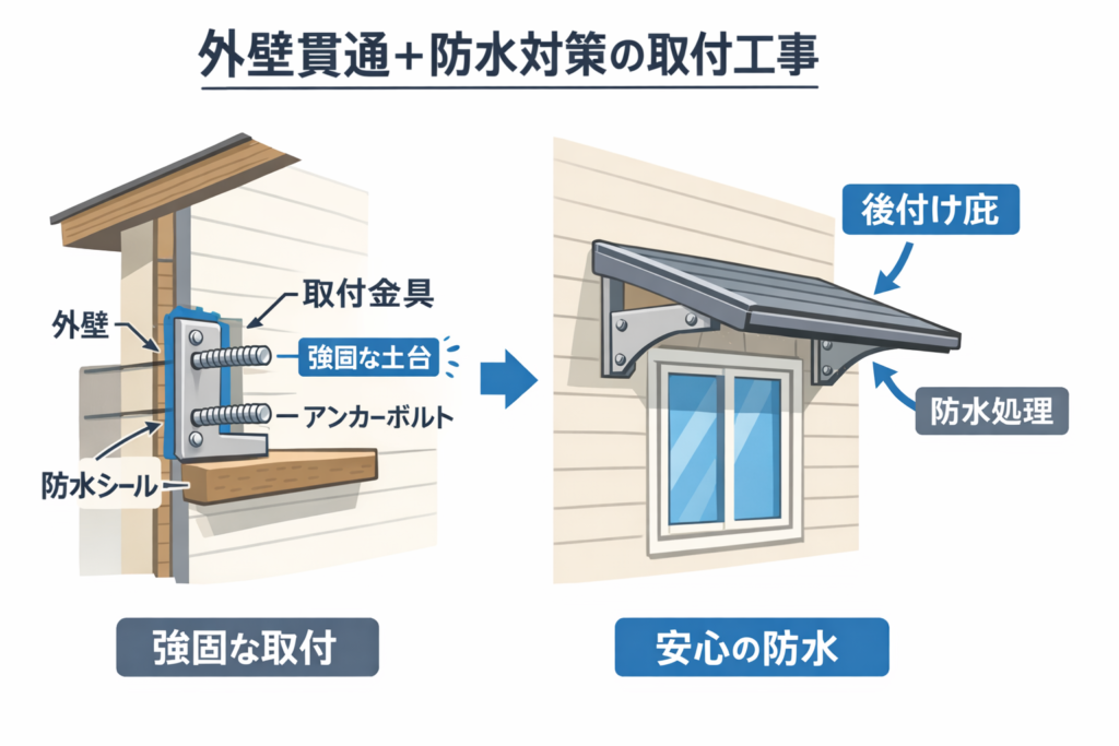 庇選びで後悔しないためのポイントは、実は見た目よりも「どこに、どう取り付けるか」という施工面にあります。