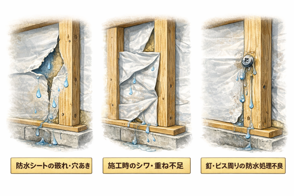 その多くは「素材の問題」ではなく、「施工」「納まり」「付帯部」といった部分に原因があります。