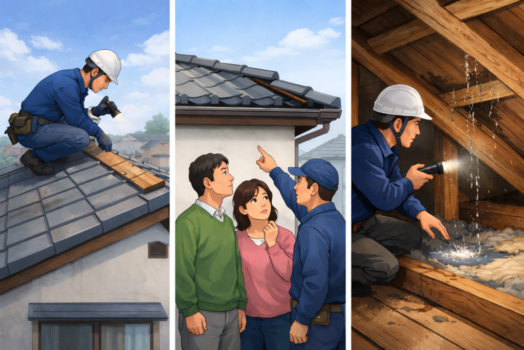 だからこそ、屋根点検や雨漏り調査の際には、表面だけでなく内部の状態まで確認することが重要になります。