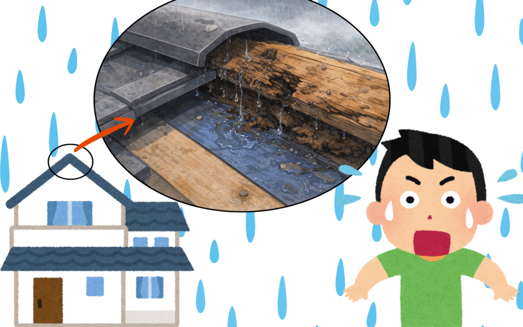 貫板が劣化する最大の原因は、雨水が少しずつ入り込むことです。