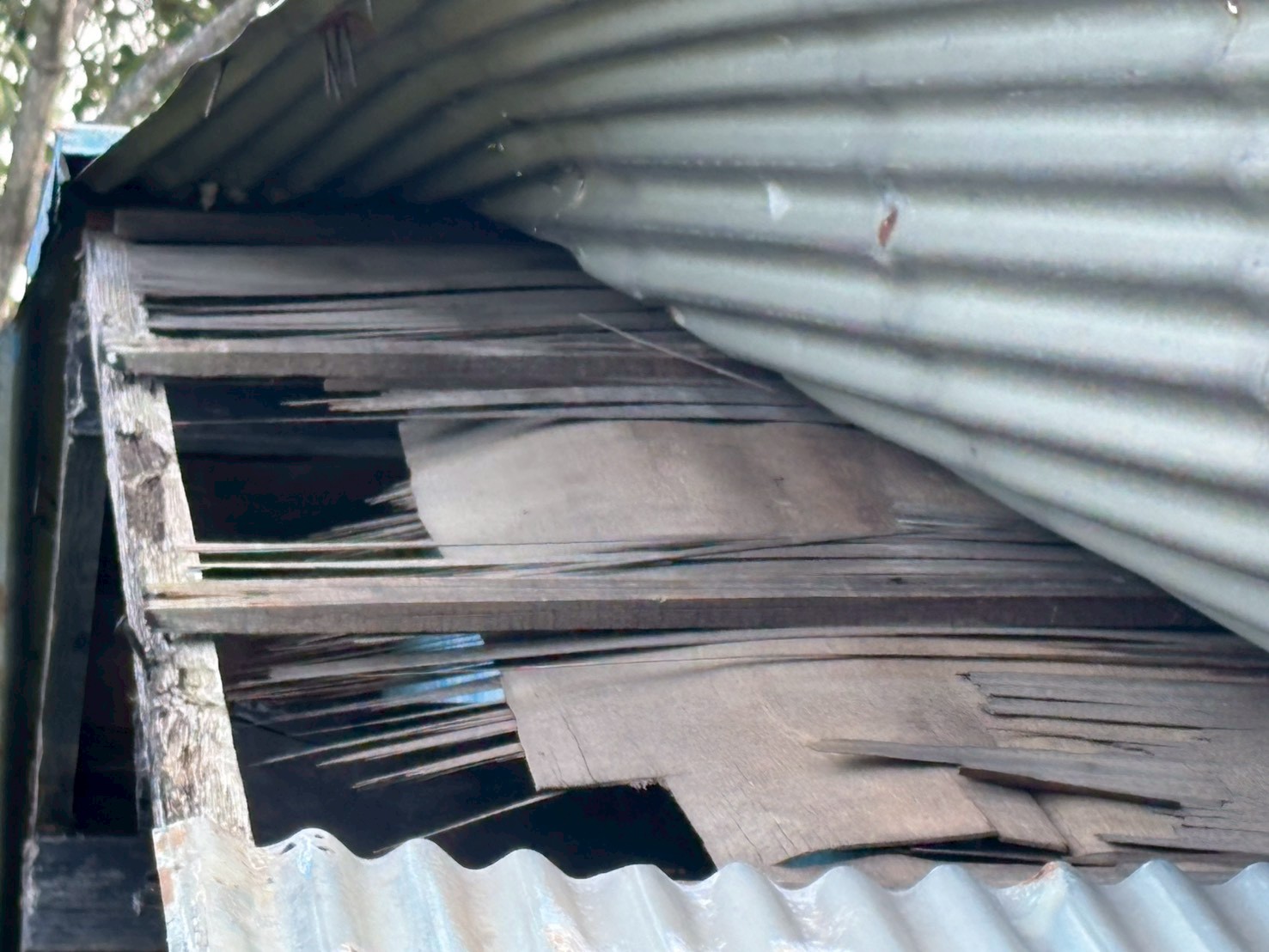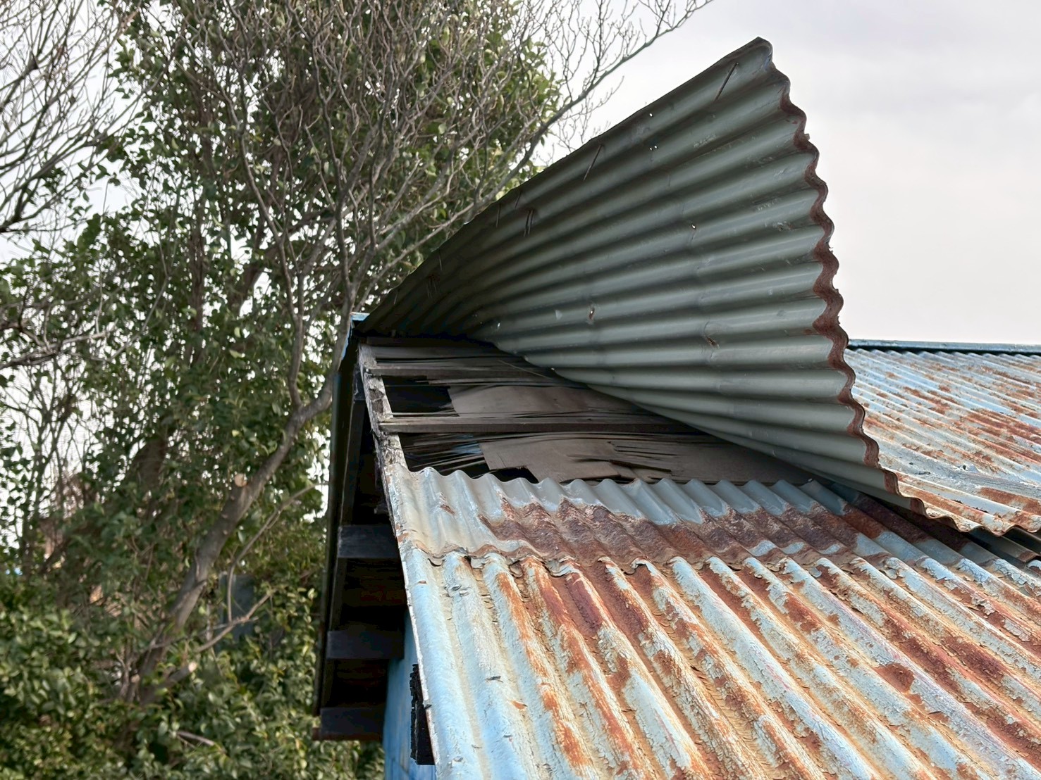 強風によってトタン屋根がめくれ上がり、雨がそのまま吹き込む状態になっていました。