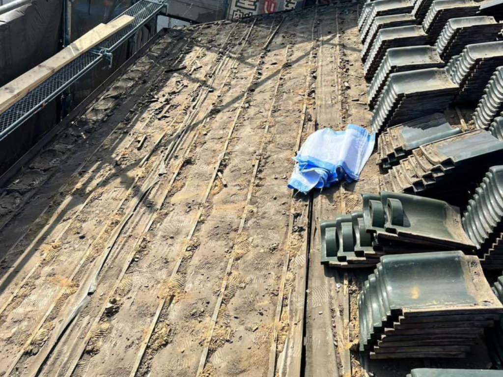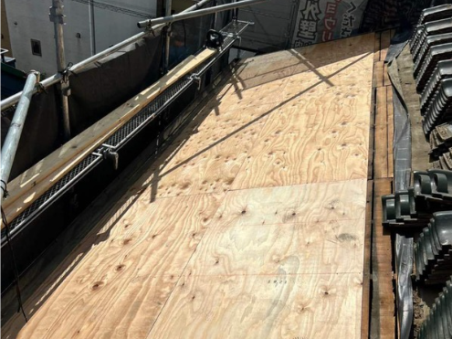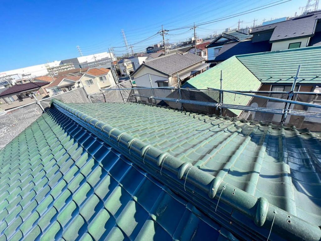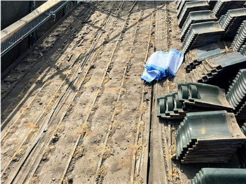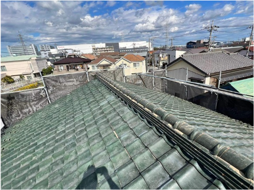 I様邸の既存の瓦屋根はそのまま活用し、防水シートを新しいシートへ交換いたしました。