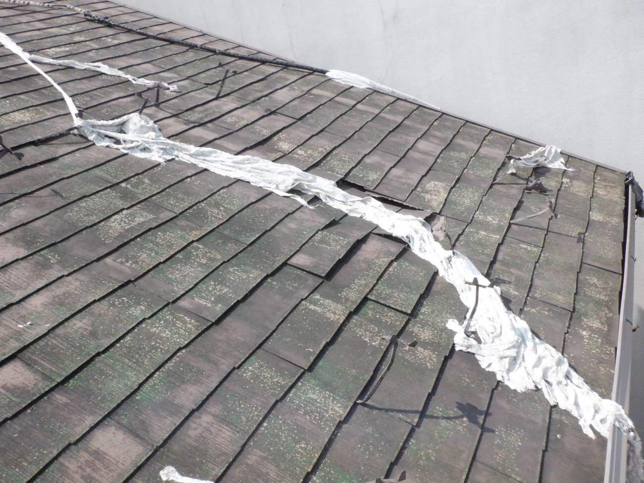 屋根材の劣化が原因で雨漏りを起こしており、今回、火災保険を活用した工事を行いました。